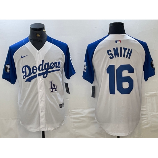 Men's Los Angeles Dodgers #16 Will Smith White Blue Fashion Stitched Cool Base Limited Jerseys