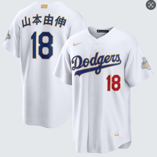 >Men's Los Angeles Dodgers #18 山本由伸 Nike White 2026 Gold Collection Stadium Jersey