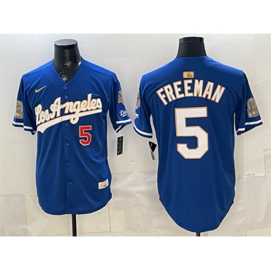 Men's Los Angeles Dodgers #5 Freddie Freeman Royal 2026 Gold Collection 9x & B2B Champs Stitched Baseball Jersey