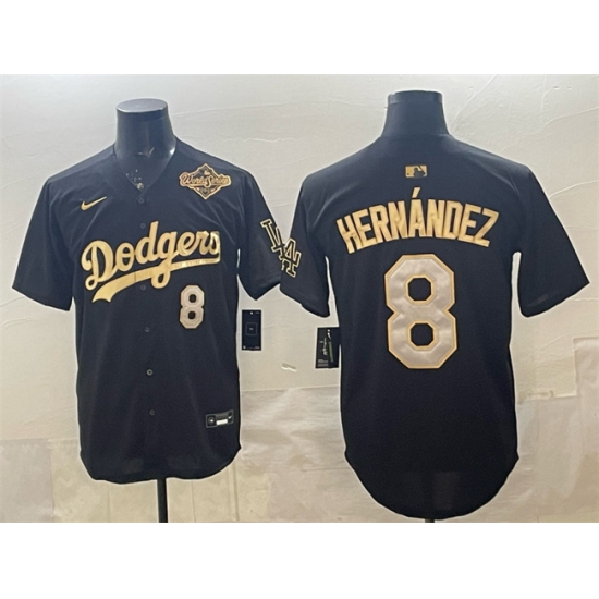 Men's Los Angeles Dodgers #8 Enrique Hernández Black Gold 2025 World Series Limited Stitched Baseball Jersey