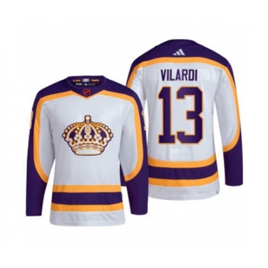 >Men's Los Angeles Kings #13 Gabriel Vilardi White 2022 Reverse Retro Stitched Jersey