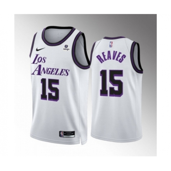 >Men's Los Angeles Lakers #15 Austin Reaves White City Edition Stitched Basketball Jersey