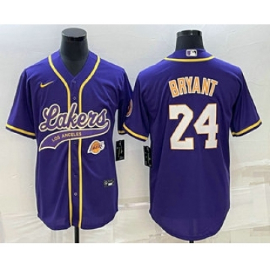 Men's Los Angeles Lakers #24 Kobe Bryant Purple With Cool Base Stitched Baseball Jerseys