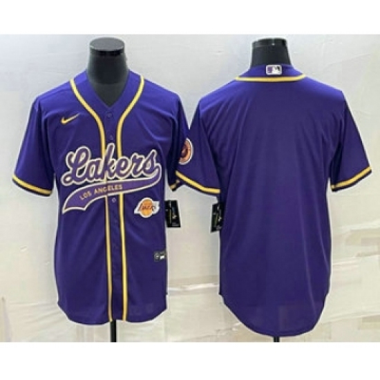 Men's Los Angeles Lakers Purple Team Big Logo Cool Base Stitched Baseball Jersey