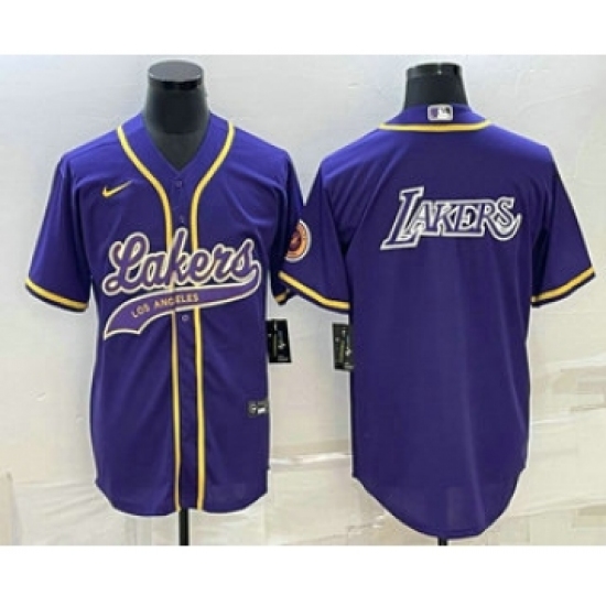 Men's Los Angeles Lakers Purple Big Logo Cool Base Stitched Baseball Jersey
