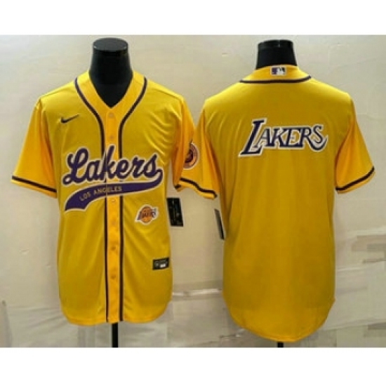 Mens Los Angeles Lakers Yellow Big Logo With Cool Base Stitched Baseball Jersey