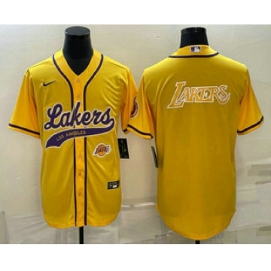Men's Los Angeles Lakers Yellow Big Logo With Cool Base Stitched Baseball Jerseys