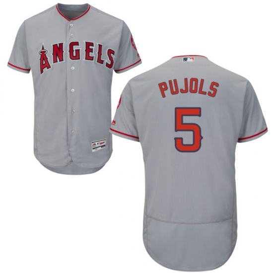 Home>MLB>Los Angeles Angels of Anaheim>Albert Pujols>Men's Majestic Los Angeles Angels of Anaheim #5 Albert Pujols Grey Road Flex Base Authentic Collection MLB Jersey