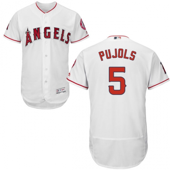 Home>MLB>Los Angeles Angels of Anaheim>Albert Pujols>Men's Majestic Los Angeles Angels of Anaheim #5 Albert Pujols White Home Flex Base Authentic Collection MLB Jersey