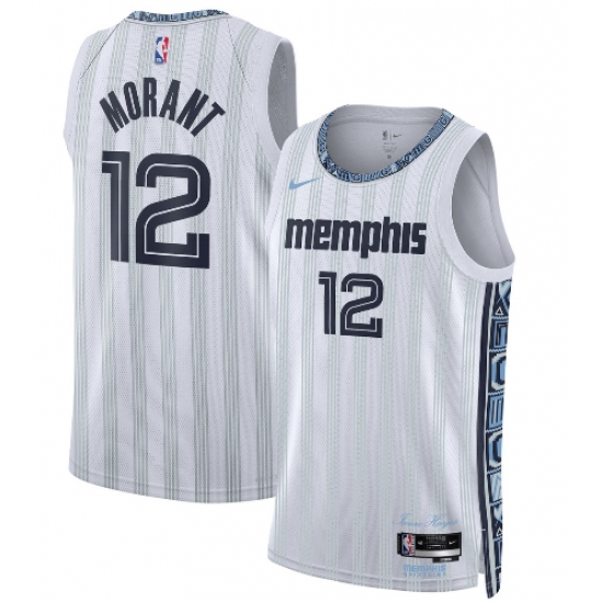 Men's Memphis Grizzlies #12 Ja Morant White 2025-26 City Edition Edition Stitched Basketball Jersey