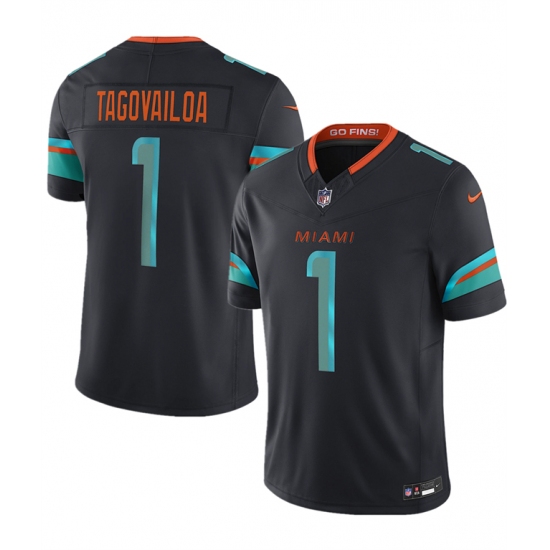 Men's Miami Dolphins #1 Tua Tagovailoa Black 2025 F.U.S.E. “Rivalries” Vapor Limited Stitched Football Jersey