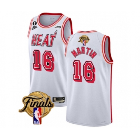 Men's Miami Heat #16 Caleb Martin White 2023 Finals Classic Edition With NO.6 Stitched Basketball Jersey