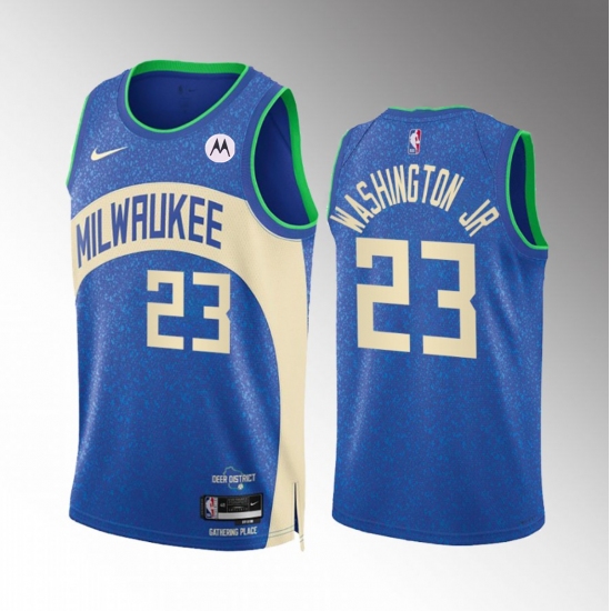 Men's Milwaukee Bucks #23 TyTy Washington Jr. Blue 2023-24 City Edition Stitched Basketball Jersey
