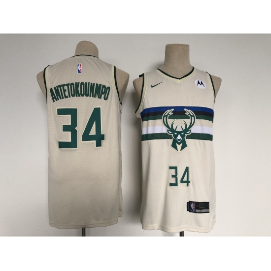 >Men's Milwaukee Bucks #34 Giannis Antetokounmpo Swingman Cream City Player Jersey