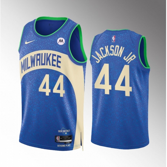 Men's Milwaukee Bucks #44 Andre Jackson Jr. Blue 2023-24 City Edition Stitched Basketball Jersey