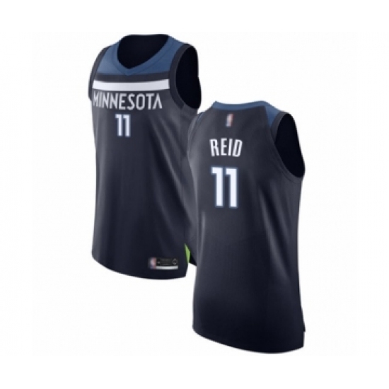 >Men's Minnesota Timberwolves #11 Naz Reid Authentic Navy Blue Basketball Jersey - Icon Edition