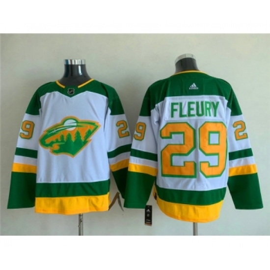 Men's Minnesota Wild #29 Marc-Andre Fleury White Green Stitched Jersey