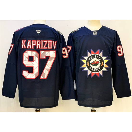 Men's Minnesota Wild #97 Kirill Kaprizov Navy 2024-25 Stitched Hockey Jersey