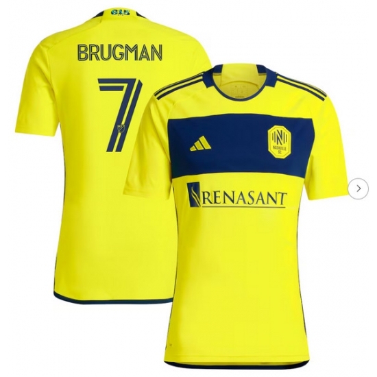 >Mens Nashville SC Gastón Brugman adidas Yellow 2024 The 615 Kit Replica Player Jersey