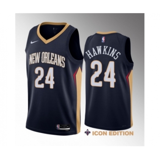 Men's New Orleans Pelicans #24 Jordan Hawkins Navy 2023 Draft Icon Edition Stitched Basketball Jersey