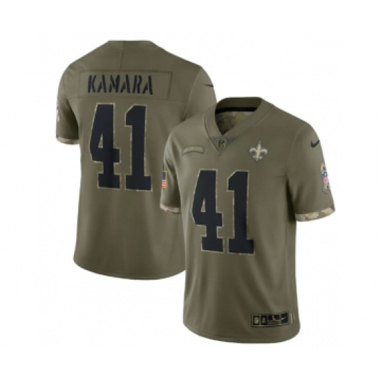 >Men's New Orleans Saints #41 Alvin Kamara 2022 Olive Salute To Service Limited Stitched Jersey