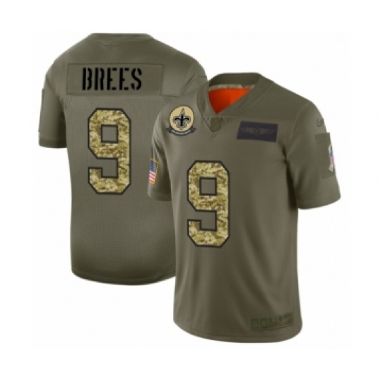 >Men's New Orleans Saints #9 Drew Brees 2019 Olive Camo Salute to Service Limited Jersey