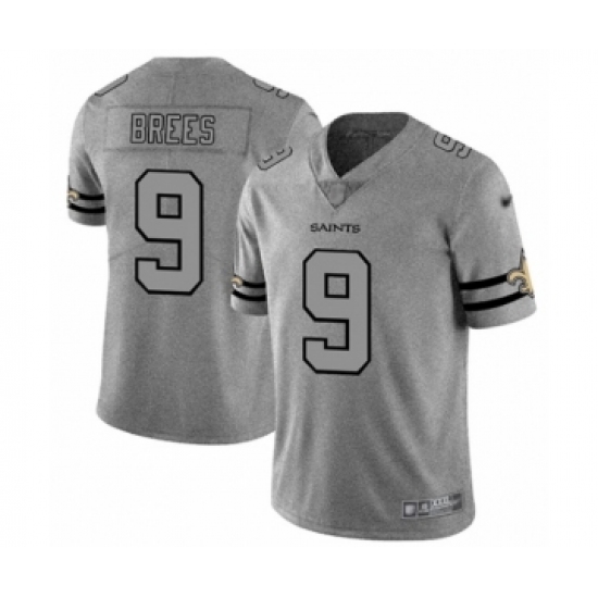 Men's New Orleans Saints #9 Drew Brees Limited Gray Team Logo Gridiron Football Jersey