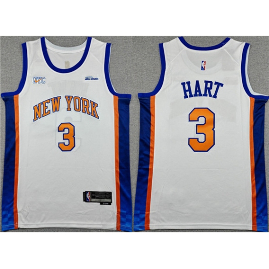 Men's New Yok Knicks #3 Josh Hart White 2024-25 City Edition Stitched Basketball Jersey