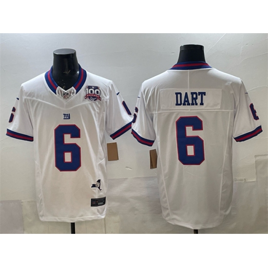 Men's New York Giants #6 Jaxson Dart White 2025 Draft F.U.S.E. 100th Season & State Vapor Limited Stitched Football Jersey