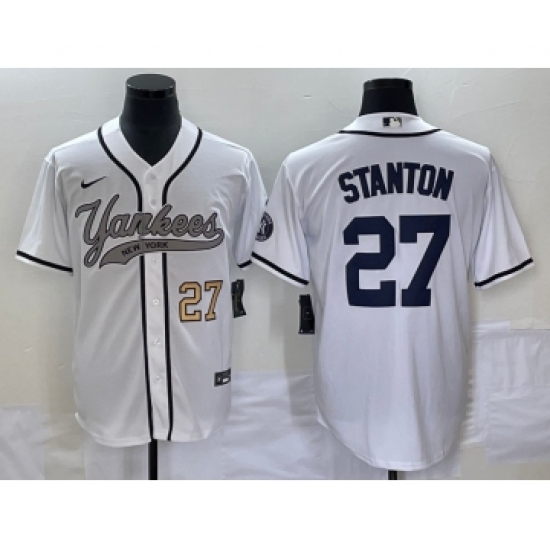 Men's Nike New York Yankees #27 Giancarlo Stanton White Home Stitched Baseball Jersey