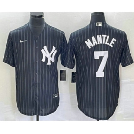 Men's New York Yankees #7 Mickey Mantle Black Pinstripe Cool Base Stitched Baseball Jersey