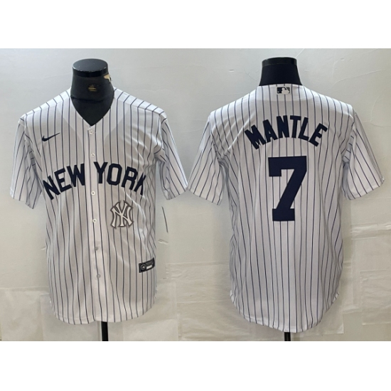 Men's New York Yankees #7 Mickey Mantle White Pinstripe Fashion Cool Base Jersey