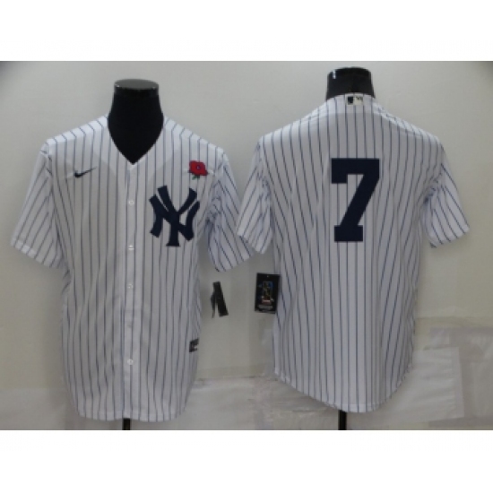 >Men's New York Yankees #7 Mickey Mantle White No Name Stitched Rose Nike Cool Base Throwback Jersey