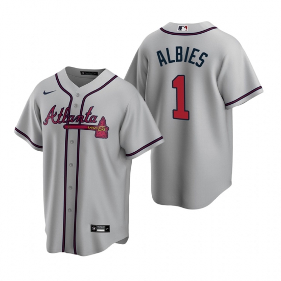 Men's Nike Atlanta Braves #1 Ozzie Albies Gray Road Stitched Baseball Jersey