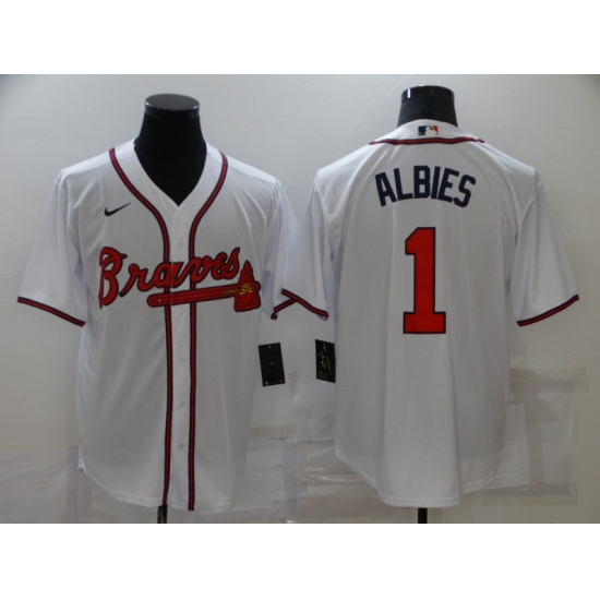Men's Nike Atlanta Braves #1 Ozzie Albies White Game Authentic Jersey