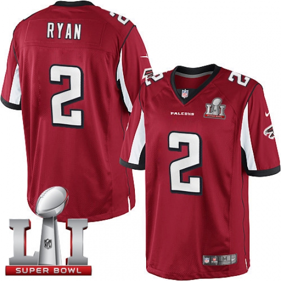 Home>NFL>Atlanta Falcons>Matt Ryan>Men's Nike Atlanta Falcons #2 Matt Ryan Red Team Color Super Bowl LI 51 Vapor Untouchable Limited Player NFL Jersey