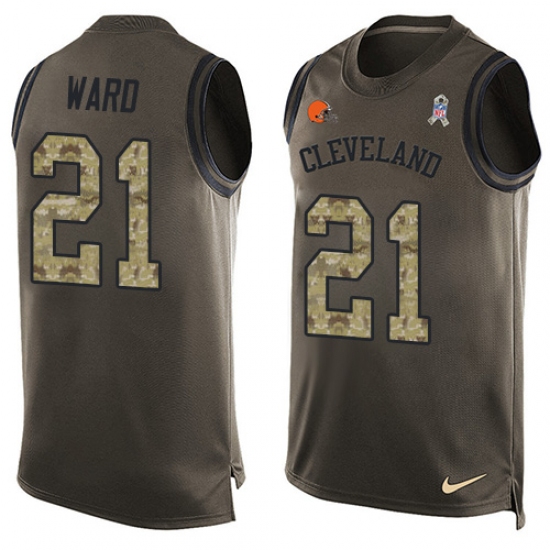 >Men's Nike Cleveland Browns #21 Denzel Ward Limited Green Salute to Service Tank Top NFL Jersey