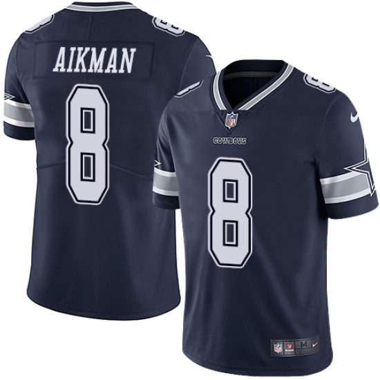 Home>NFL>Dallas Cowboys>Troy Aikman>Men's Nike Dallas Cowboys #8 Troy Aikman Navy Blue Team Color Vapor Untouchable Limited Player NFL Jersey