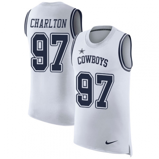 Men's Nike Dallas Cowboys #97 Taco Charlton Limited White Rush Player Name & Number Tank Top NFL Jersey