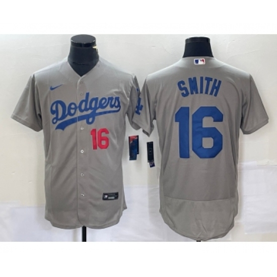 >Men's Nike Los Angeles Dodgers #16 Will Smith Number Grey Stitched Flex Base Jersey