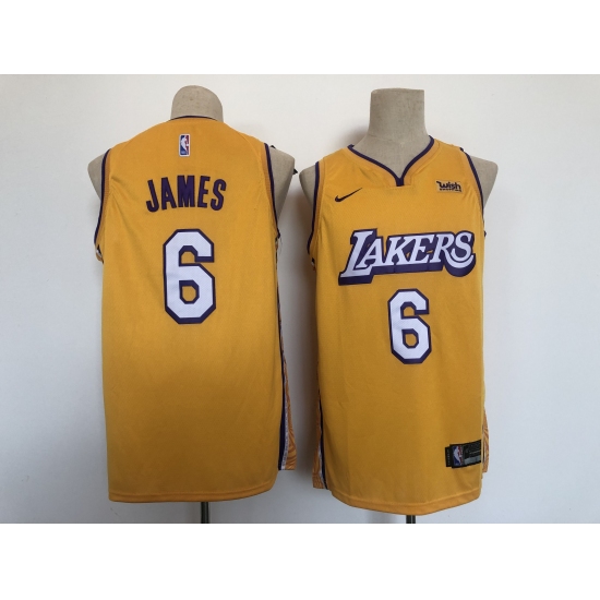 Men's Nike Los Angeles Lakers #6 LeBron James Yellow Basketball Swingman Association Edition Jersey