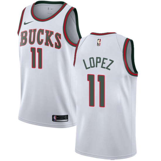 Men's Nike Milwaukee Bucks #11 Brook Lopez Swingman White Fashion Hardwood Classics NBA Jersey