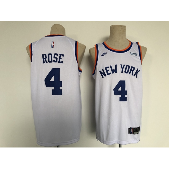 Men's New York Knicks #4 Derrick Rose White Stitched Basketball Jersey