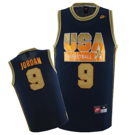 Men's Nike Team USA #9 Michael Jordan Authentic Navy Blue Gold No. Basketball Jersey