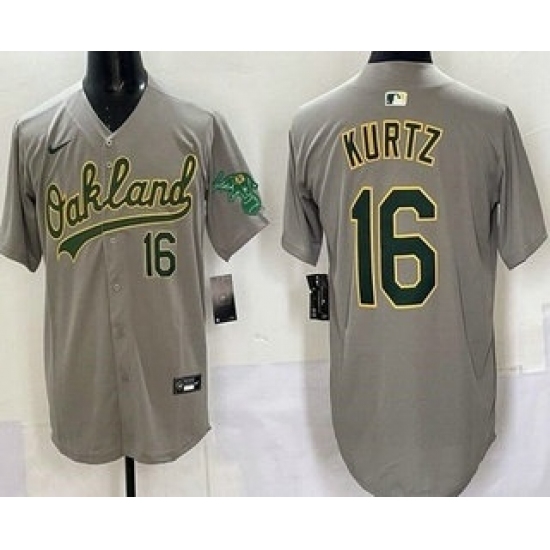 Men's Oakland Athletics #16 Nick Kurtz Grey Cool Base Stitched Baseball Jersey