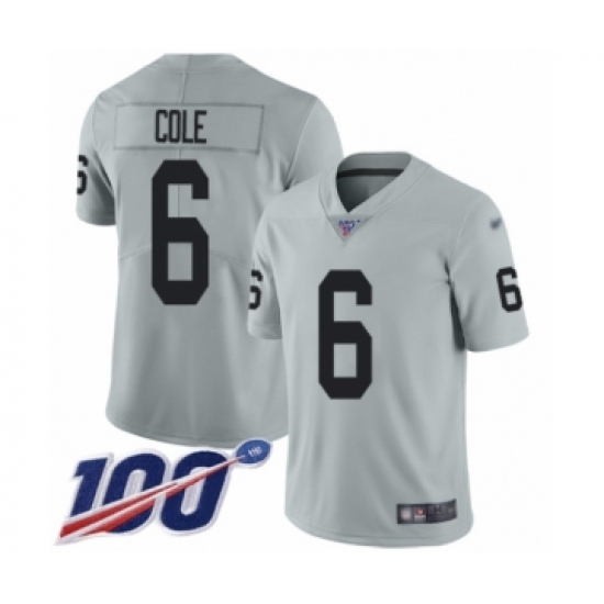 >Men's Oakland Raiders #6 A.J. Cole Limited Silver Inverted Legend 100th Season Football Jersey