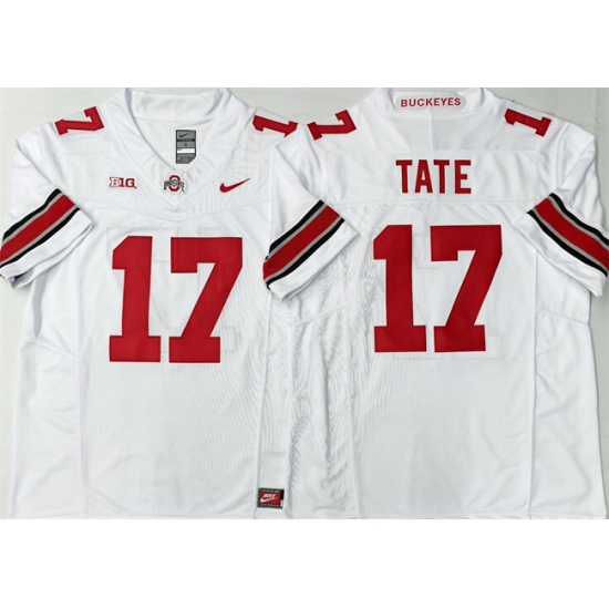 >Men's Ohio State Buckeyes #17 Carnell Tate White 2025 F.U.S.E. Limited Stitched Jersey