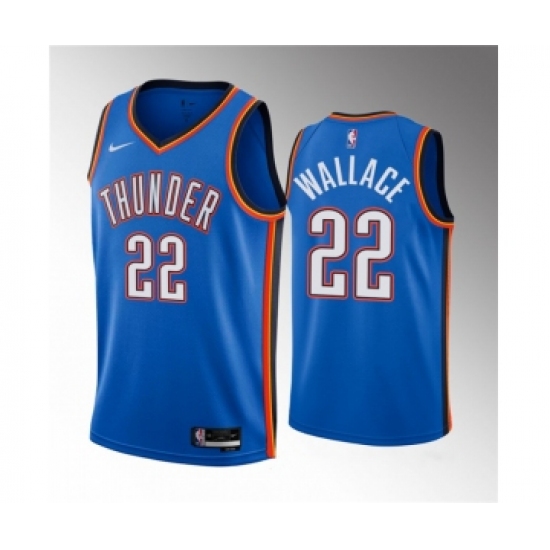 Men's Oklahoma City Thunder #22 Cason Wallace Blue 2023 Draft Icon Edition Stitched Basketball Jersey