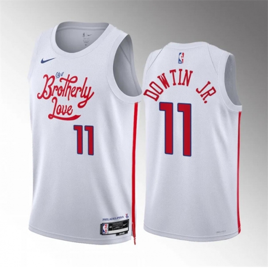 >Men's Philadelphia 76ers #11 Jeff Dowtin Jr White City Edition Stitched Jersey