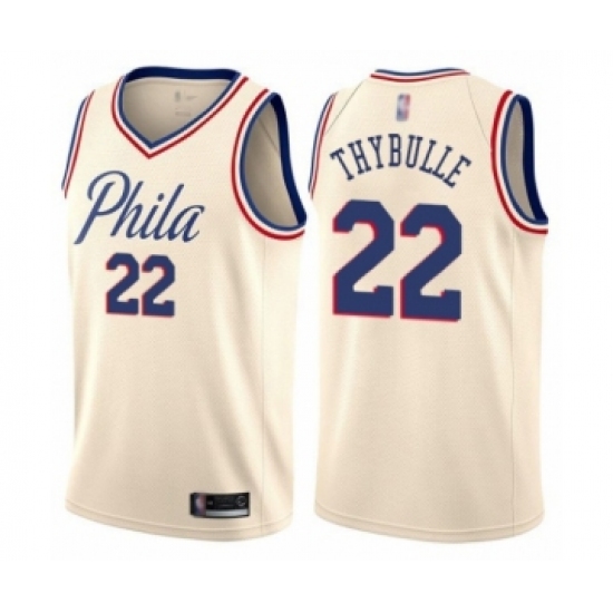 >Men's Philadelphia 76ers #22 Mattise Thybulle Authentic Cream Basketball Jersey - City Edition